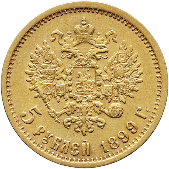 Materiál: Zlato Váha: 4,30 g. Ryzost: 900 Průměr: 18 mm Hrana: hladká s vlisem Mincovna: Rusko